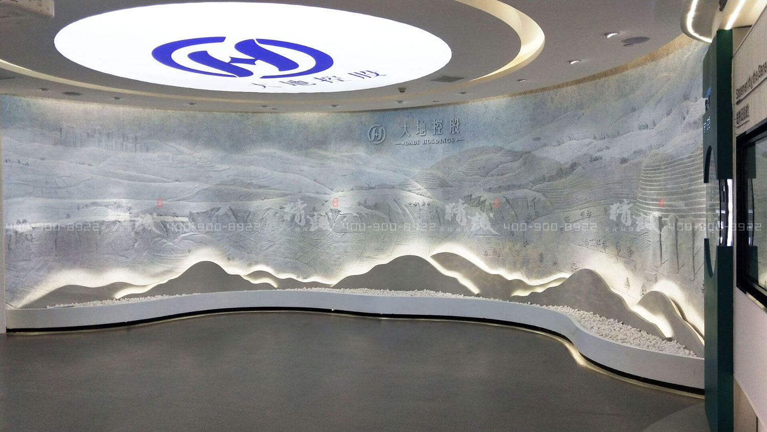 成人抖音APP下载展覽打造的山西大地環境投資控股有限公司企業展廳,把綠水青山理念融入整體設計風格,以土地改造理念貫穿整館。